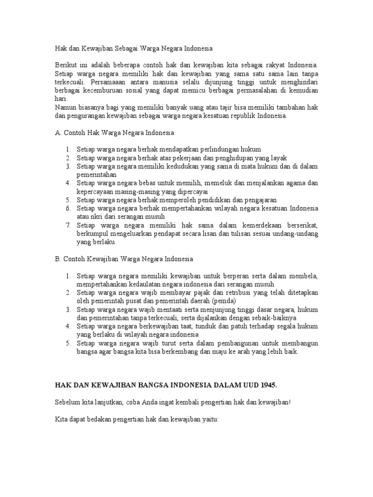 Nov 05, 2015 · sudah menjadi kewajiban kita untuk merawat dan menjaganya. Jun 05, 2021 · individu dan kelompok masyarakat ialah pemegang hak. Hak dan kewajiban sebagai warga negara indonesia Melihat keadaan sekarang, tentu kita dapat melihat bagaimana gambaran bangsa indonesia kedepannya. Jika negara tidak mau atau tidak punya keinginan memenuhinya, negara bisa dikatakan telah melanggar ham atau hukum internasional (hlm 51).